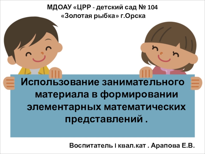 Воспитатель I квал.кат . Арапова Е.В.