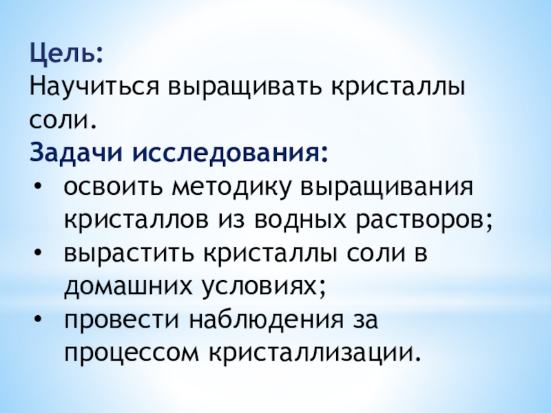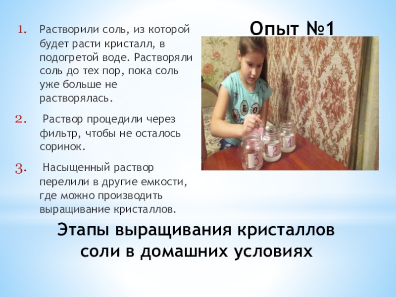 «Выращивание кристаллов из поваренной соли ».