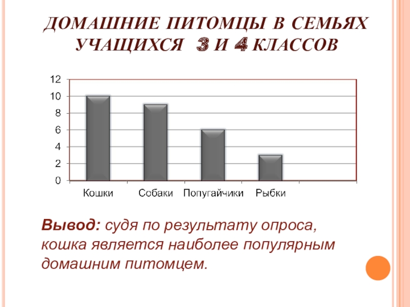Вывод: судя по результату опроса, кошка является наиболее популярным домашним питомцем.