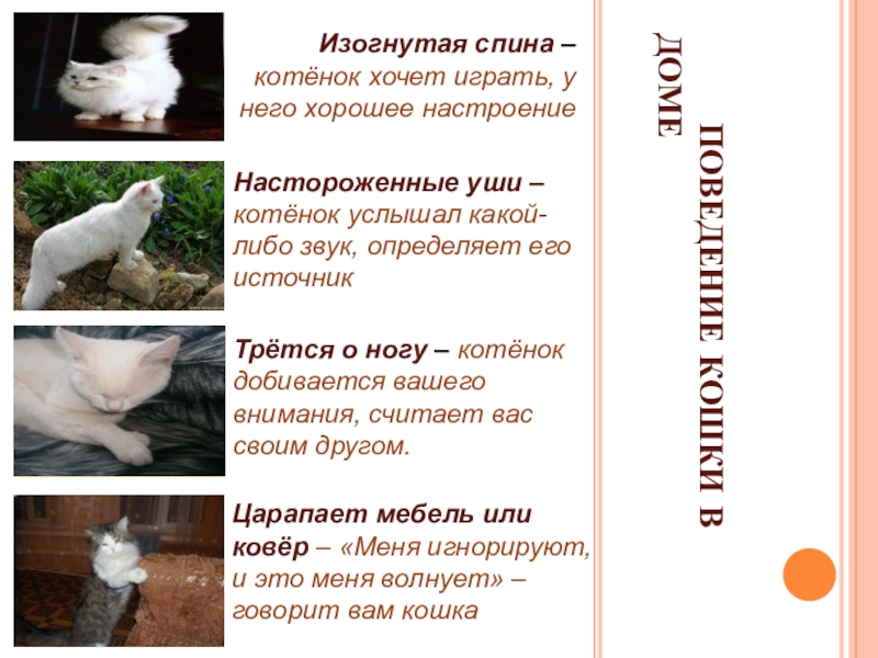 Трётся о ногу – котёнок добивается вашего внимания, считает вас своим другом.