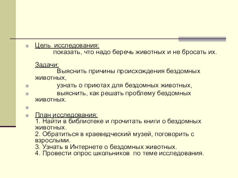 1. Найти в библиотеке и прочитать книги о бездомных животных.