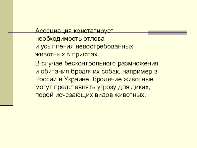 Слайд 8Ассоциация констатирует необходимость отлова и усыпления невостребованных животных в приютах.