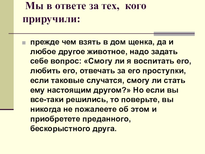 Слайд 22 Мы в ответе за тех, кого приручили:
