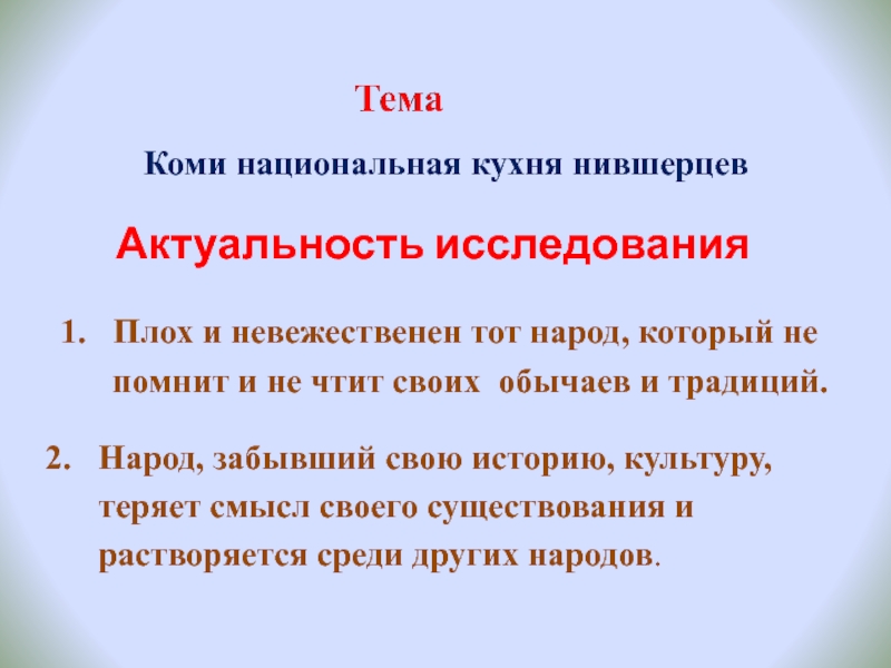 Народ, забывший свою историю, культуру, теряет смысл своего существования и растворяется среди других народов.