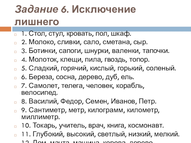 Слайд 15Задание 6. Исключение лишнего