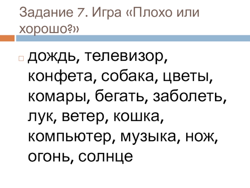 Слайд 16Задание 7. Игра «Плохо или хорошо?».