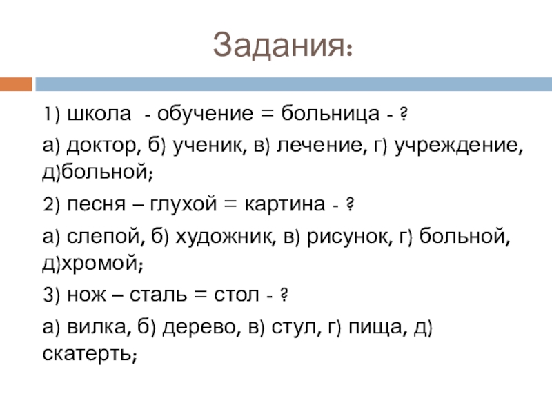 2) песня – глухой = картина - ?