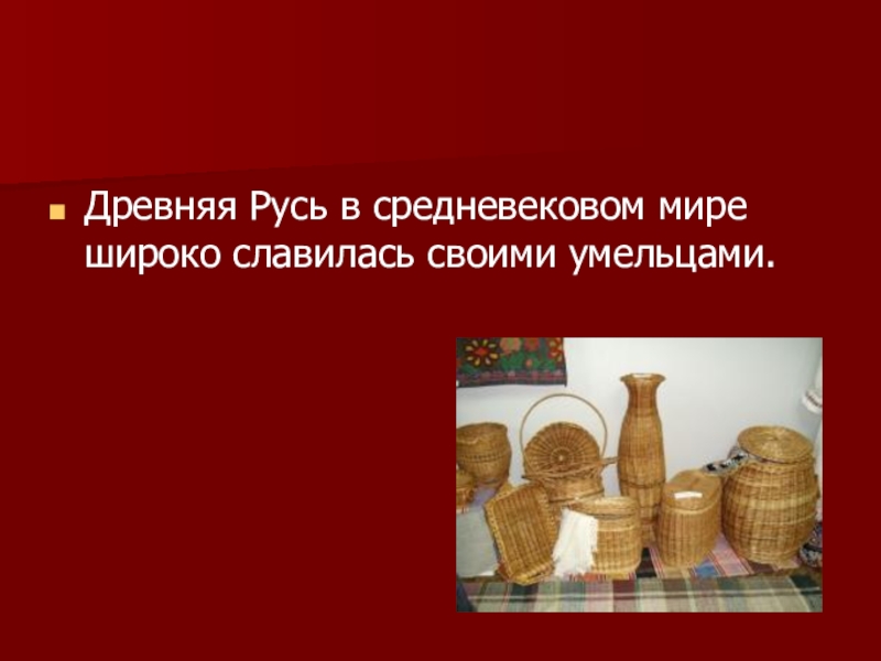 Слайд 4Древняя Русь в средневековом мире широко славилась своими умельцами.