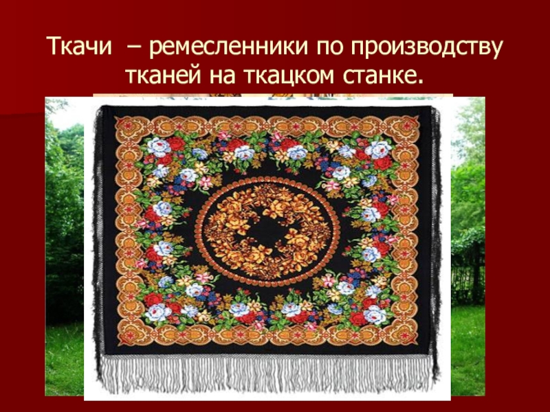 Слайд 19Ткачи – ремесленники по производству тканей на ткацком станке.