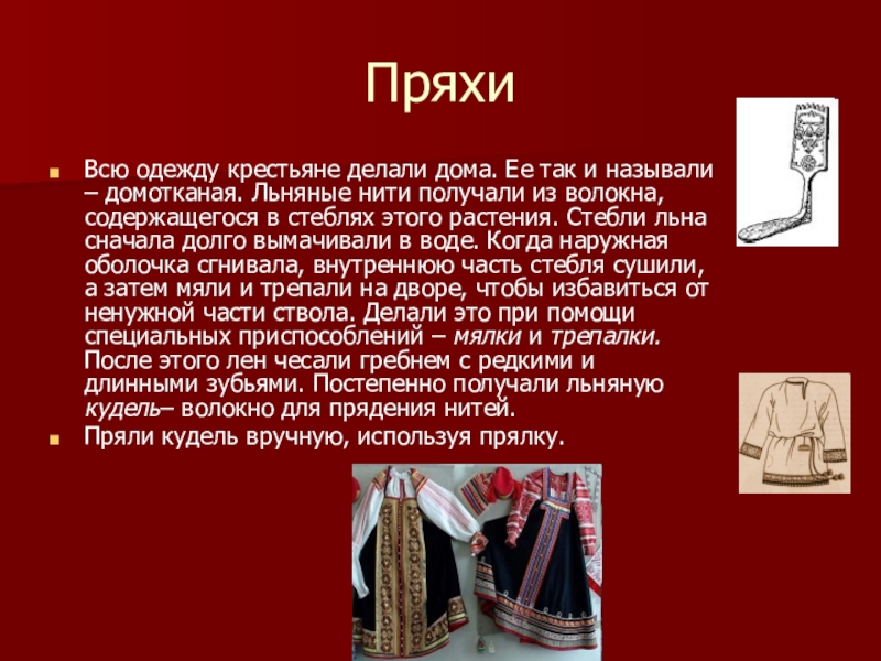Всю одежду крестьяне делали дома. Ее так и называли – домотканая.