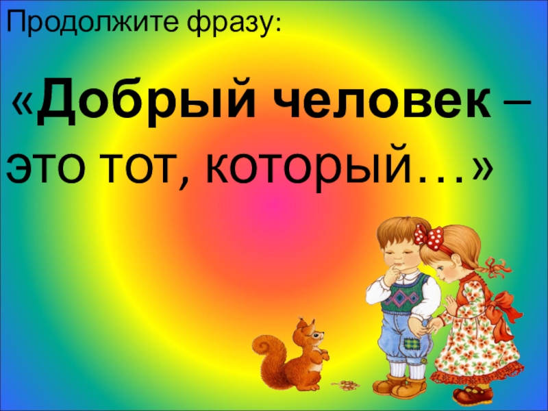 Продолжите фразу:    «Добрый человек –       это тот, который…»
