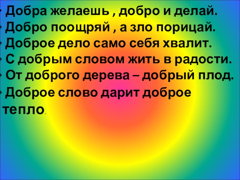 Добра желаешь , добро и делай. Добро поощряй , а зло порицай. Доброе дело само себя