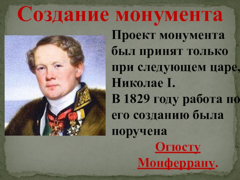 Проект монумента был принят только при следующем царе, Николае I.