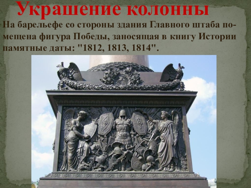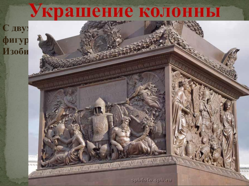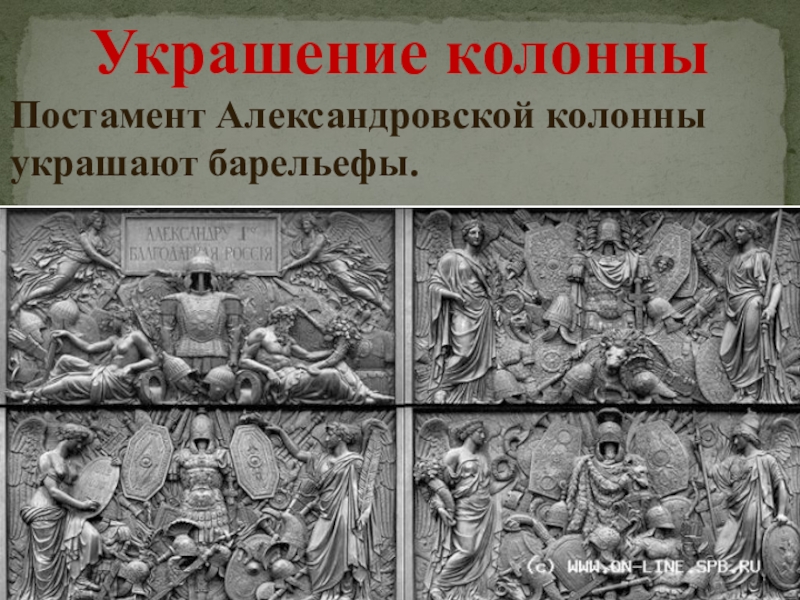 Постамент Александровской колонны украшают барельефы.