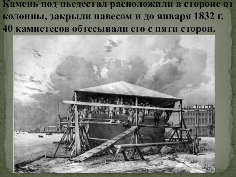 до января 1832 г. 40 камнетесов обтесывали его с пяти сторон.