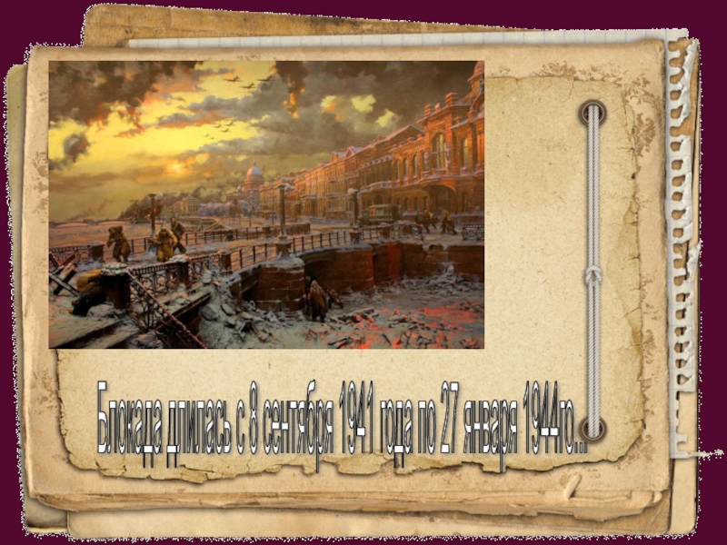 Слайд 2Блокада длилась с 8 сентября 1941 года по 27 января 1944го...