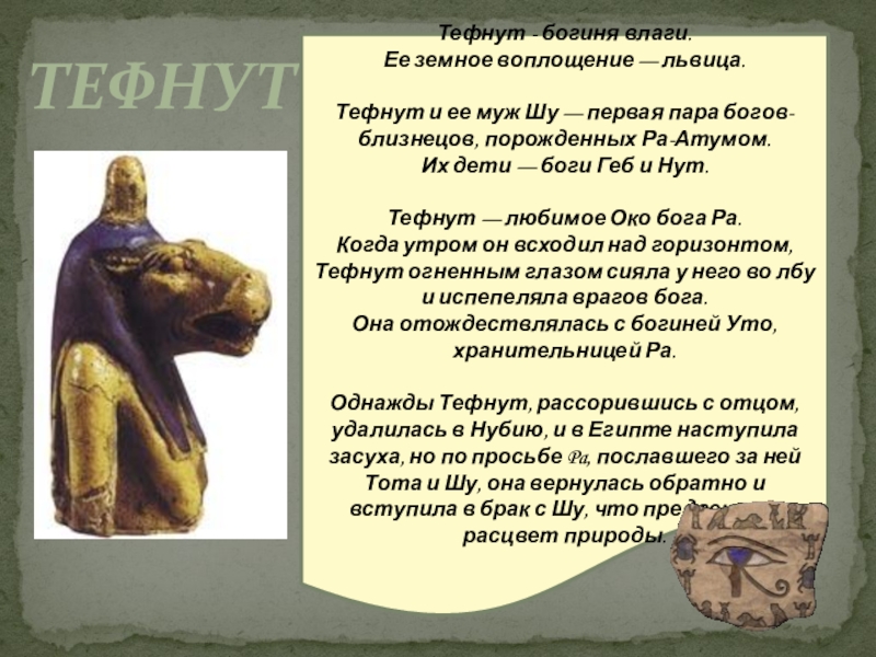 Тефнут — любимое Око бога Ра.