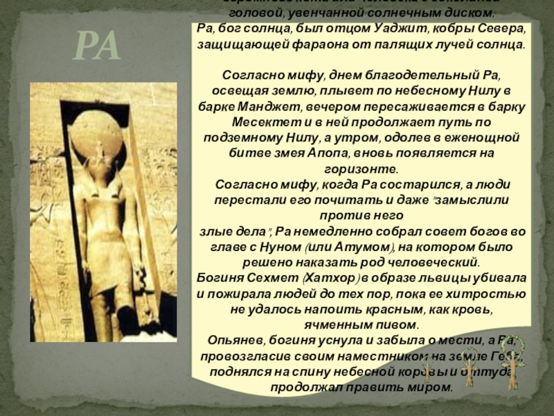 солнца Ра, участница сотворения мира.