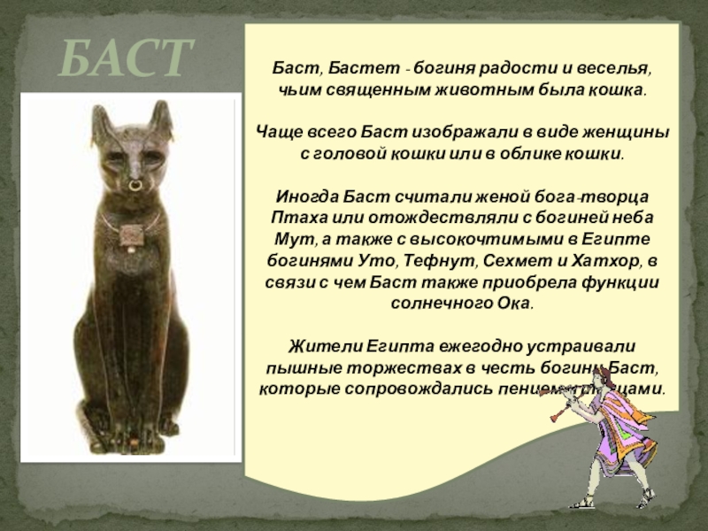 Баст, Бастет - богиня радости и веселья, чьим священным животным была