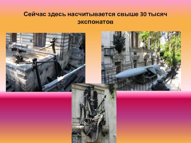 Слайд 12Сейчас здесь насчитывается свыше 30 тысяч экспонатов