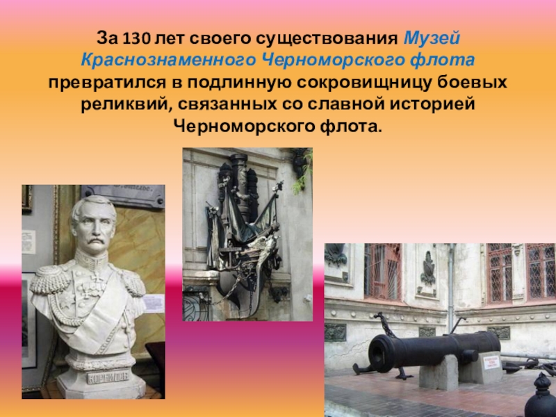 Слайд 11За 130 лет своего существования Музей Краснознаменного Черноморского флота превратился в