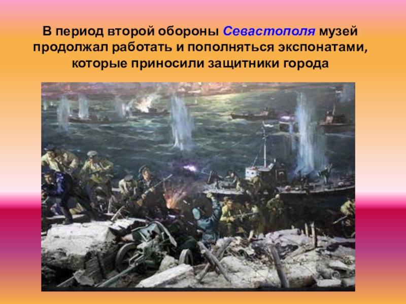 Слайд 9В период второй обороны Севастополя музей продолжал работать и пополняться экспонатами,