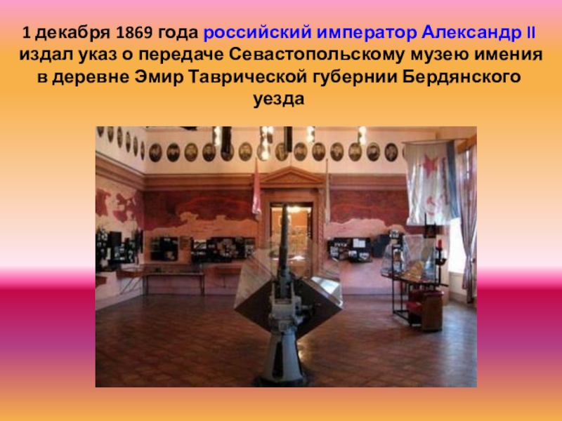 передаче Севастопольскому музею имения в деревне Эмир Таврической губернии Бердянского уезда