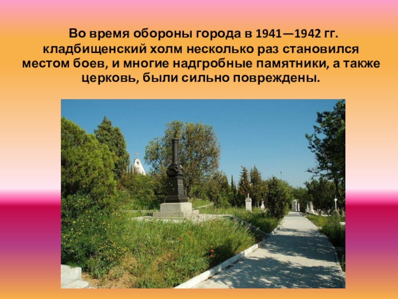 Слайд 21 Во время обороны города в 1941—1942 гг. кладбищенский