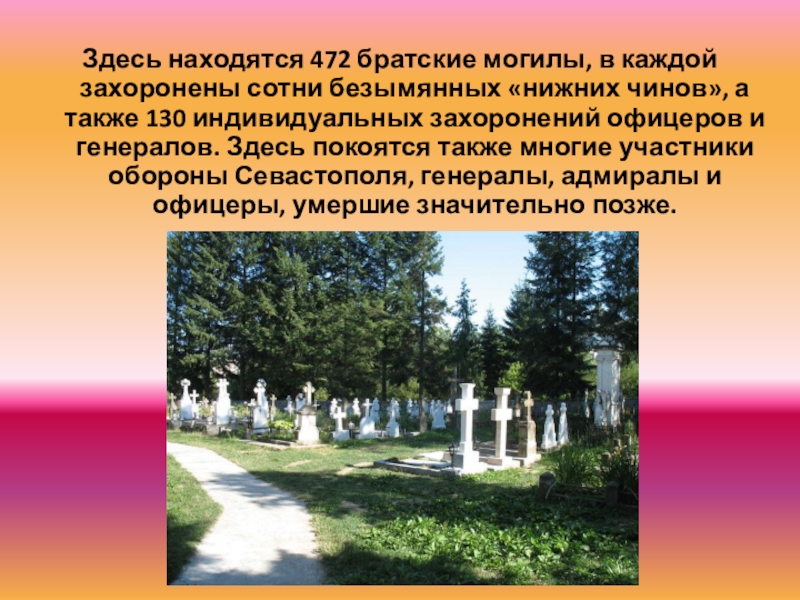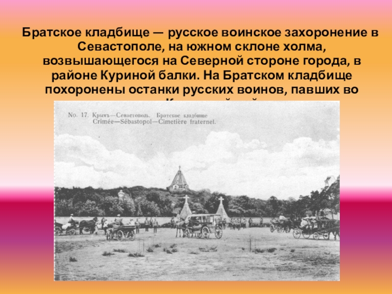 Слайд 14 Братское кладбище — русское воинское захоронение в Севастополе, на