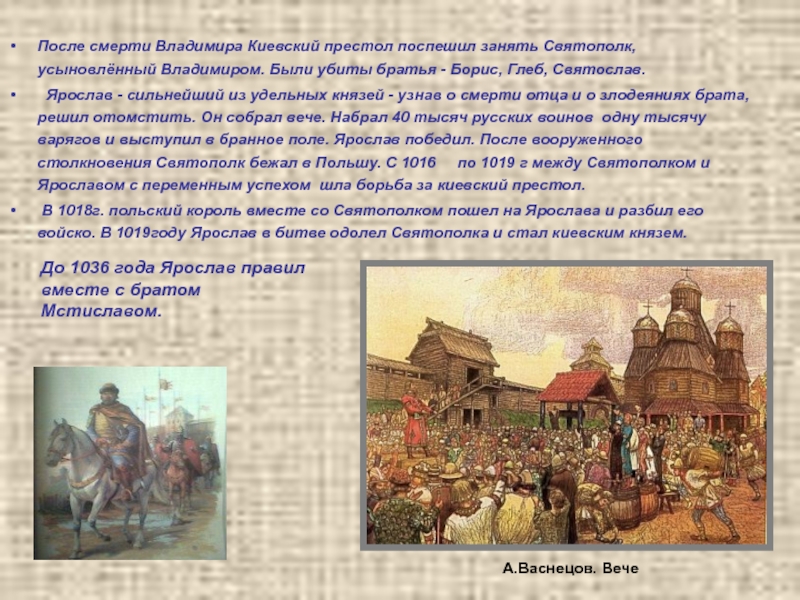До 1036 года Ярослав правил вместе с братом Мстиславом.