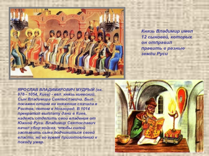 Князь Владимир имел 12 сыновей, которых он отправил править в разные земли Руси