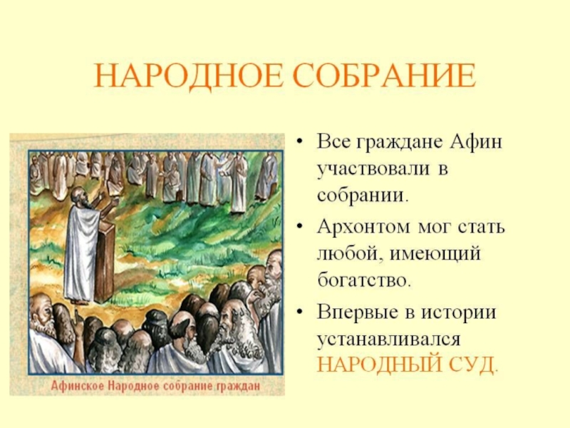 Народное собрание в том, что он нуждается в защите. Тогда Народное собрание разрешило ему набрать охрану, вооруженную дубинами. Писистрат набрал сначала 50 человек, потом еще и еще, и вскоре он и его приближенные стали править в Афинах. Такое правление называется тиранией.
