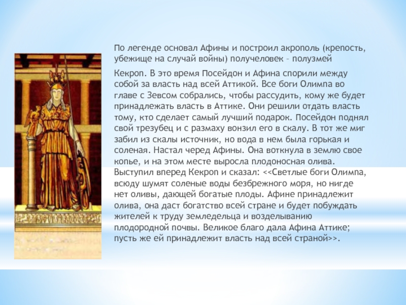 По легенде основал Афины и nостроил акроnоль (креnость, убежище на случай