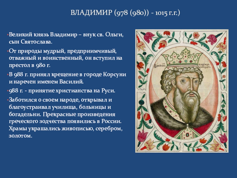 ВЛАДИМИР (978 (980)) - 1015 г.г.)