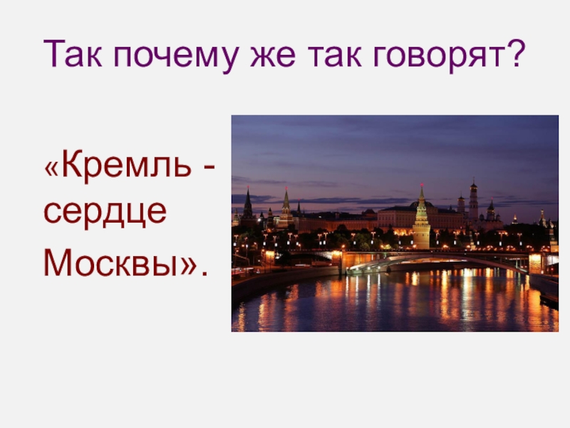 Так почему же так говорят?   «Кремль - сердце Москвы».