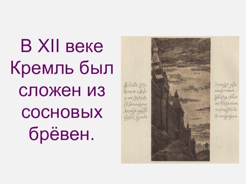Слайд 6В XII веке Кремль был сложен из сосновых брёвен.