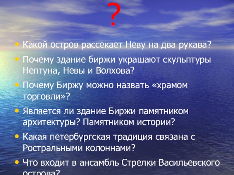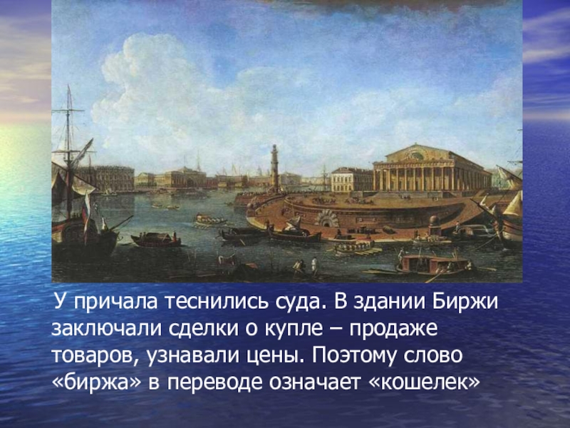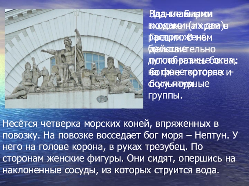 Здание Биржи похоже на храм в Греции. В нём действительно поклонялись богам: богине торговле и богу моря.