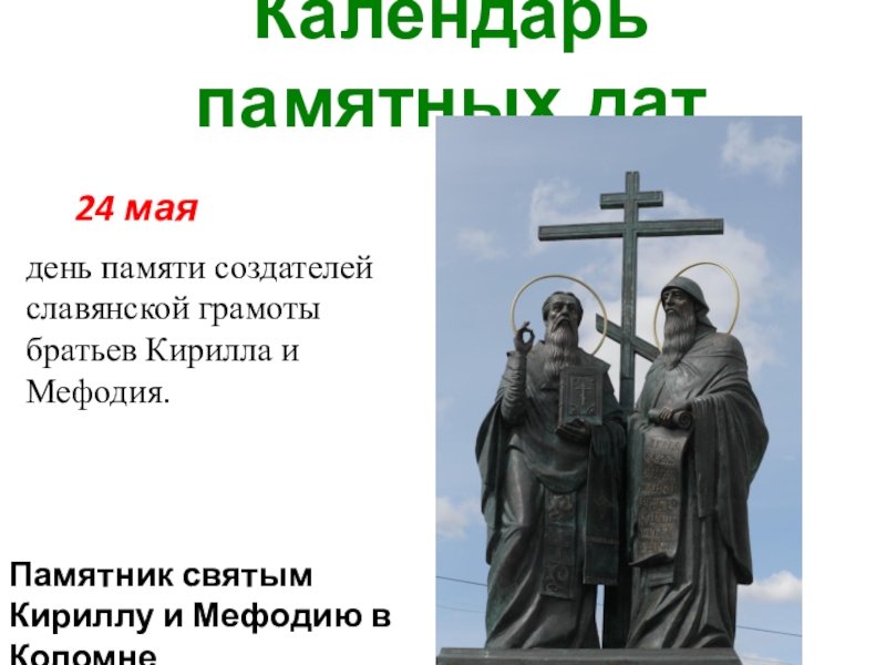 Памятник святым Кириллу и Мефодию в Коломне