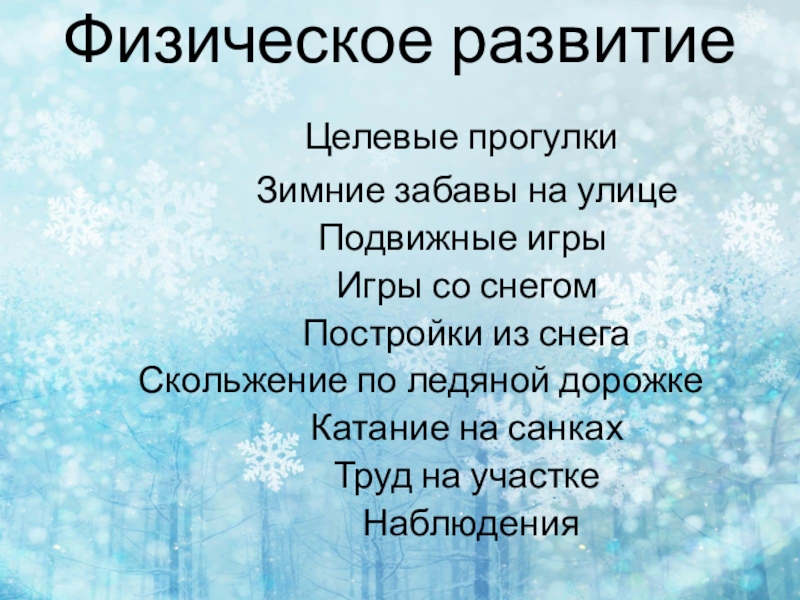 Физическое развитие    Целевые прогулки        Зимние забавы на