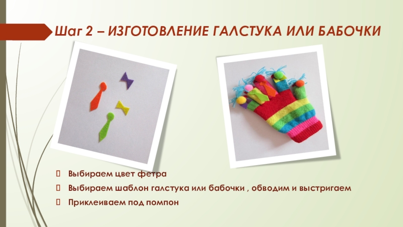 Слайд 3Шаг 2 – изготовление галстука или бабочки