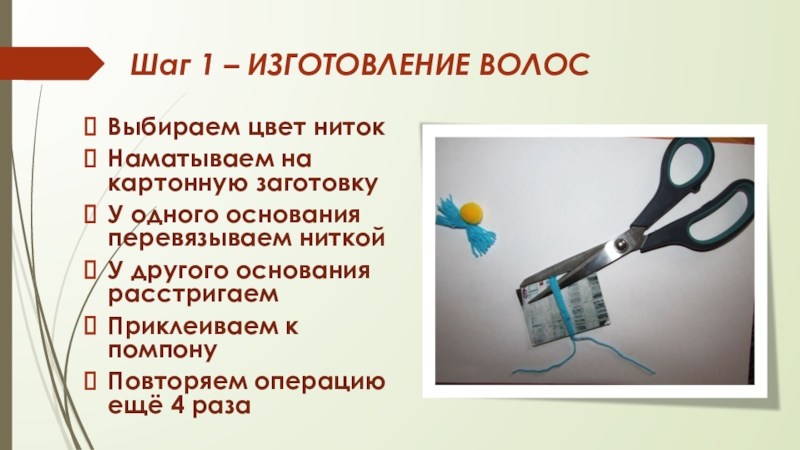 Слайд 2Шаг 1 – ИЗГОТОВЛЕНИЕ ВОЛОС