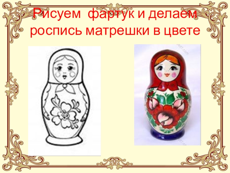 Рисуем фартук и делаем  роспись матрешки в цвете