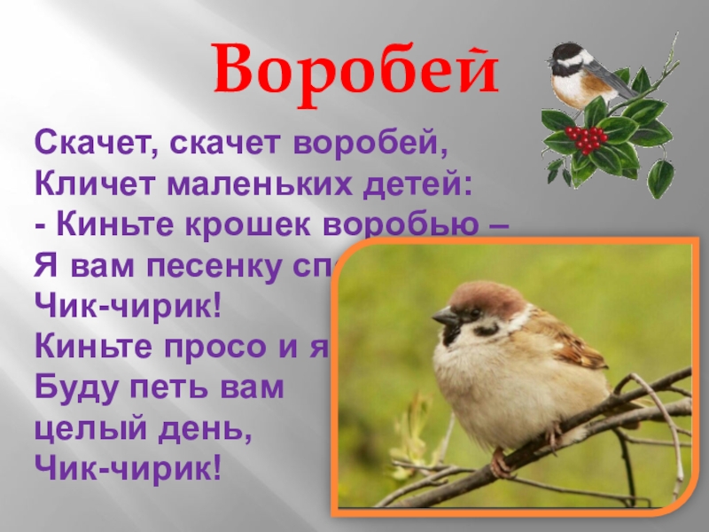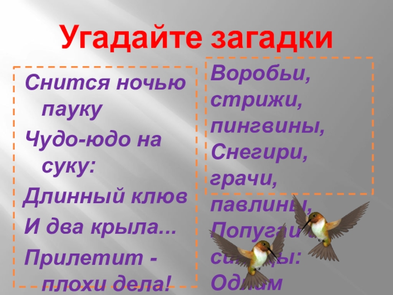 Воробьи, стрижи, пингвины, Снегири, грачи, павлины,