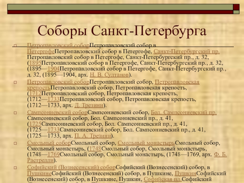 собор в Петергофе, Санкт-Петербургский пр., д. 32, (1895Петропавловский собор в Петергофе, Санкт-Петербургский пр., д. 32, (1895—1904Петропавловский собор в Петергофе, Санкт-Петербургский пр., д. 32, (1895—1904, арх. Н. В. Султанов).