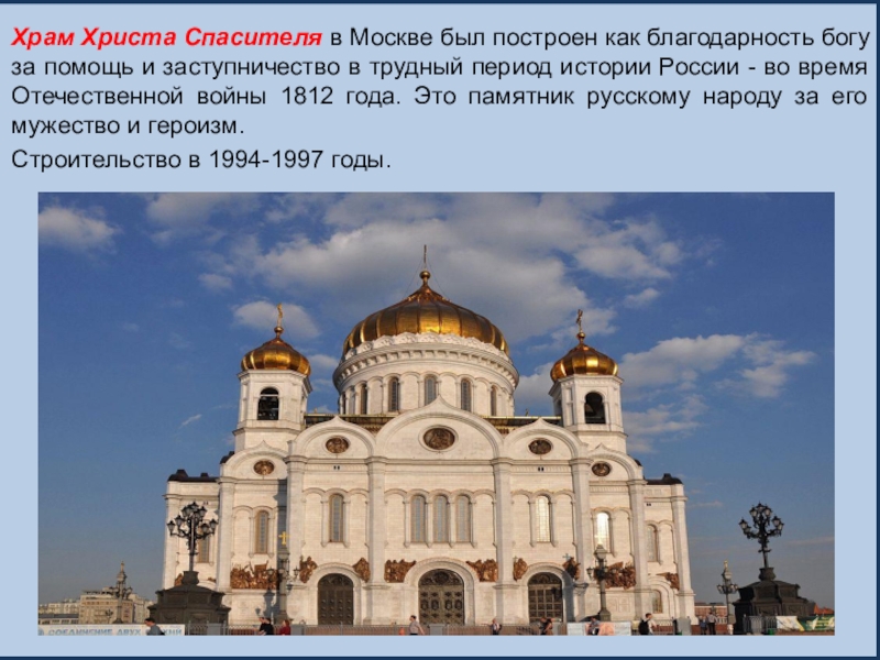Храм Христа Спасителя в Москве был построен как благодарность богу за