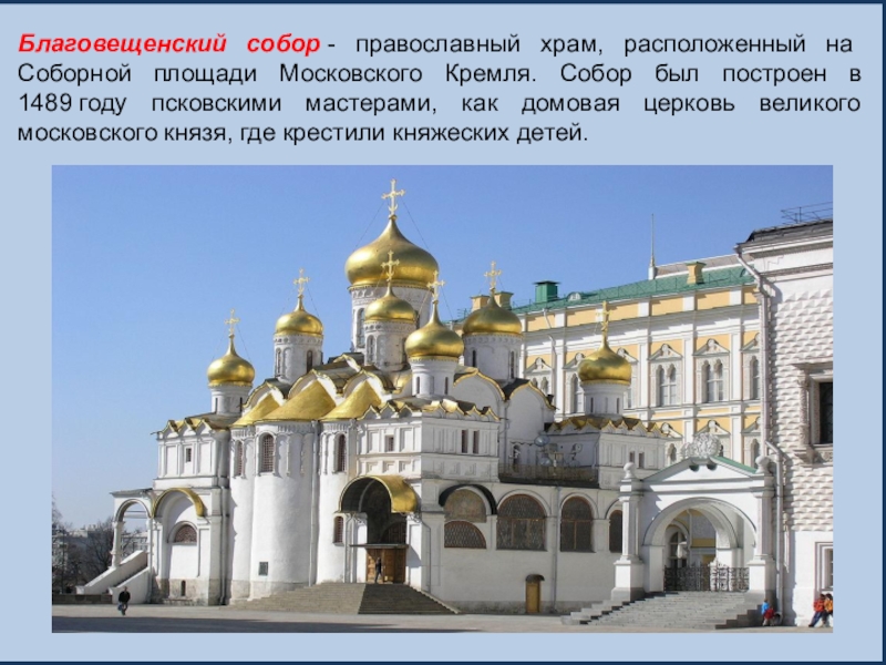 Благовещенский собор - православный храм, расположенный на Соборной площади Московского Кремля. Собор