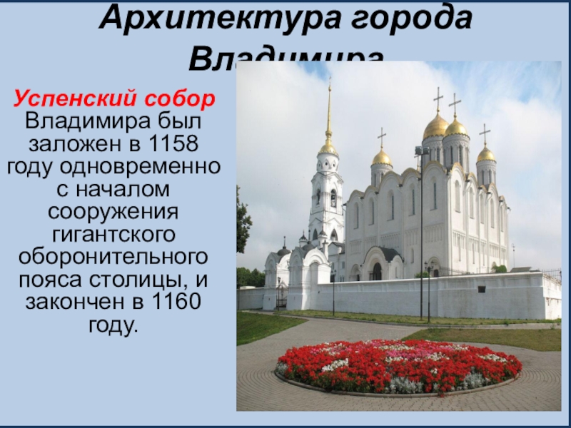 Дмитриевский собор построен в 1194-1197 годах. Он был дворцовым храмом князя Всеволода,