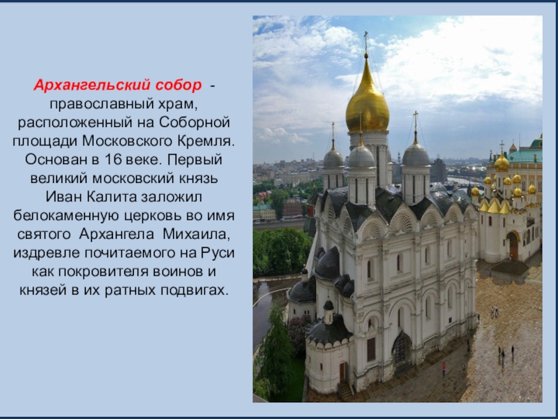 Архангельский собор - православный храм, расположенный на Соборной площади Московского Кремля.