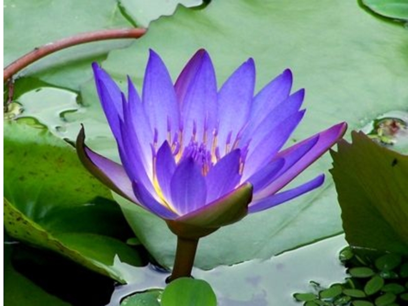 лилией) — это водное растение и относиться с семейству кувшинковые, листья у нее сердцевидно-овальные(круглые), они плавают на воде, цветок тоже как бы плавает.