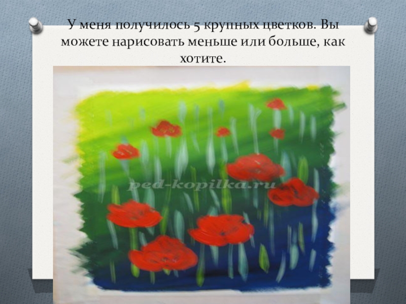 Слайд 15У меня получилось 5 крупных цветков. Вы можете нарисовать меньше или